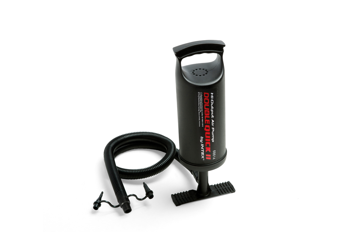 Double Quick II Hand Pump er en praktisk håndpumpe. der puster luft ind både ved op- og nedadgående bevægelser for hurtig og effektiv oppustning. Den er velegnet til luftmadrasser. badelegetøj og andre oppustelige produkter og er nem at tage med og opbevare.
