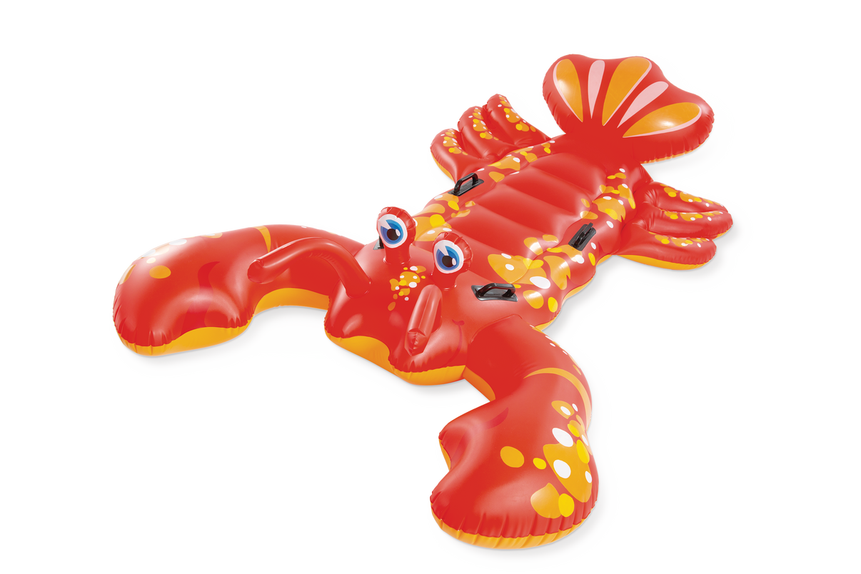 Intex Lobster er et morsomt og fargerikt oppblåsbart badeleketøy formet som en stor hummer. Den måler 137 x 213 cm og er laget av slitesterk vinyl i røde og gule nyanser. komplett med to store øyne som gir et leken uttrykk. Luftmadrassen har tre luftkammer for ekstra sikkerhet. samt fire håndtak som sikrer godt grep og stabilitet i vannet. Den er designet for å romme to barn med en samlet vekt på opptil 80 kg. Egnet for barn fra 3 år og oppover. Det følger med et reparasjonslapper for små hull eller punkteringer.