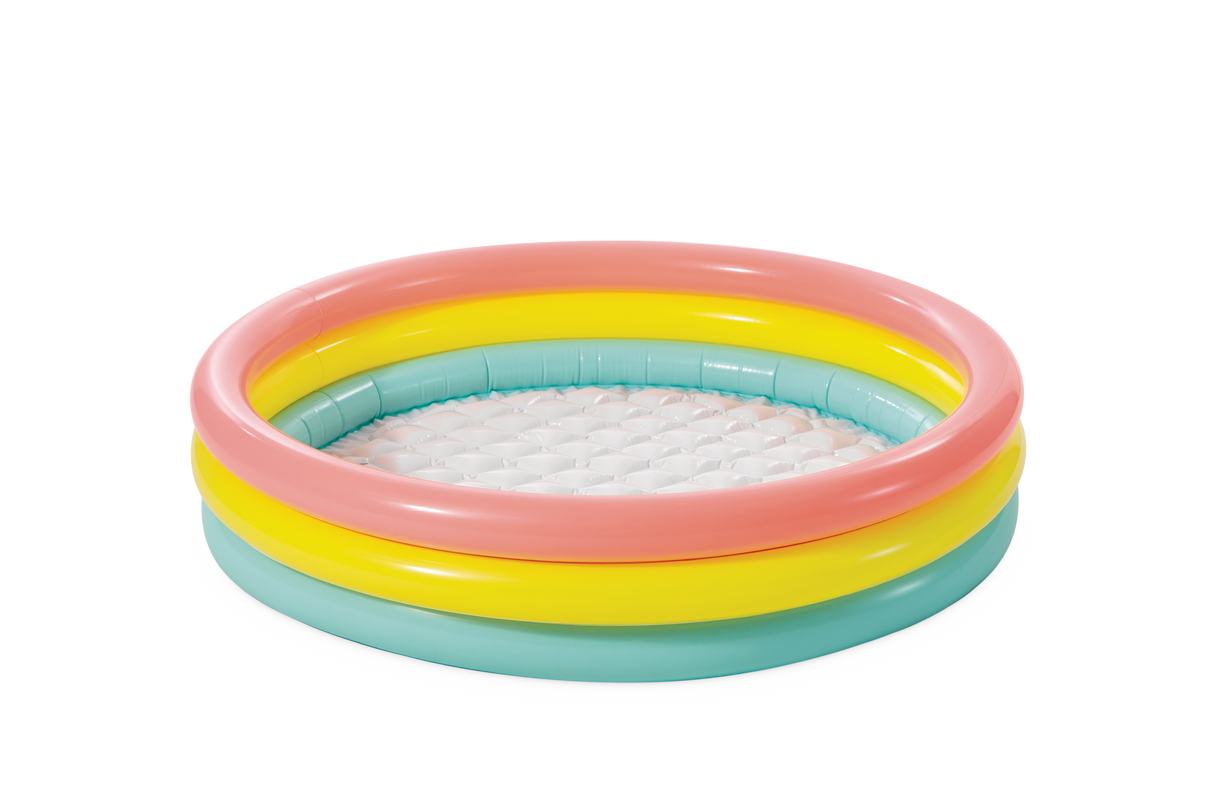 Sunset Glow Pool er et fargerikt og innbydende barnebasseng som er perfekt for moro og avkjøling på varme sommerdager. Bassenget har et flott design med klare farger som skaper en koselig sommerstemning i hagen. Med en kapasitet på 131 liter og målene 114 x 25 cm. er det ideelt for mindre barn som ønsker å leke og plaske i trygge omgivelser. Bassenget er enkelt å sette opp og ta ned igjen. noe som gjør det til et praktisk valg for sommerens utendørs vannlek.