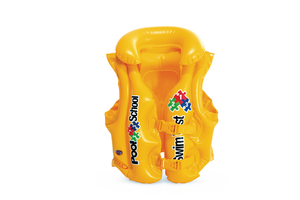 Det er viktig å være sikker og trygg når man prøver seg i vannet for første gang! Med Intex luksus redningsvest kan barn plaske uforstyrret rundt med den lette vesten som sørger for å holde dem oppe. Vestens spenner sørger for at den sitter godt fast rundt barnet. Vesten måler 50 x 47 cm og vektgrensen er fra 18-30 kg. For barn fra 3-6 år – men under oppsyn av voksen.