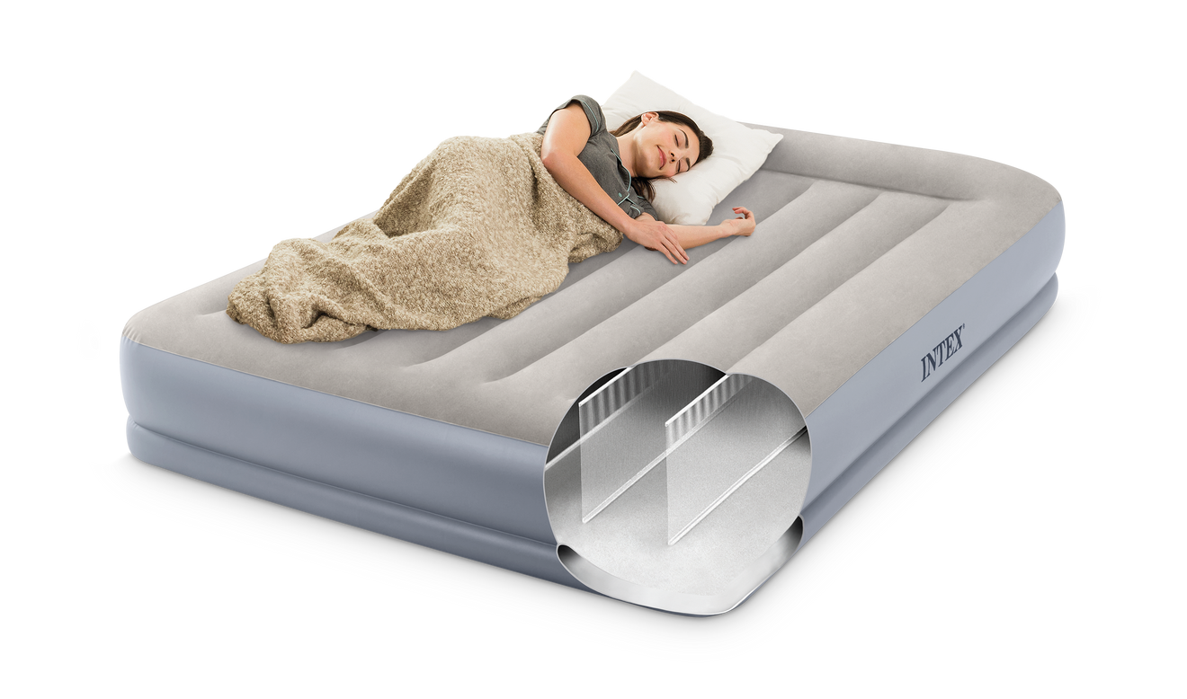 Intex Dura-Beam-teknologien anvender tusindvis af stærke polyesterfibre i stedet for traditionelle PVC-bjælker. Dura-Beam Standard sikrer, at madrassen har en højere fasthed og stabilitet end traditionelle luftmadrasser. Dette minimerer "gynge-effekten" og øger holdbarheden, hvilket giver en langt bedre soveoplevelse.