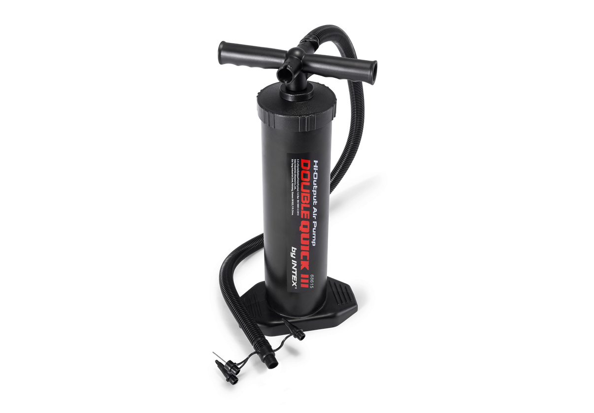 Double Quick III Hand Pump är en kraftfull och effektiv handpump som snabbt pumpar luft i uppblåsbara produkter. Pumpen fungerar både vid upp- och nedåtgående rörelser. vilket gör uppblåsningen snabbare och mer effektiv. Den är lämplig för luftmadrasser. gummibåtar och badleksaker och har en praktisk design som gör den lätt att transportera och förvara.